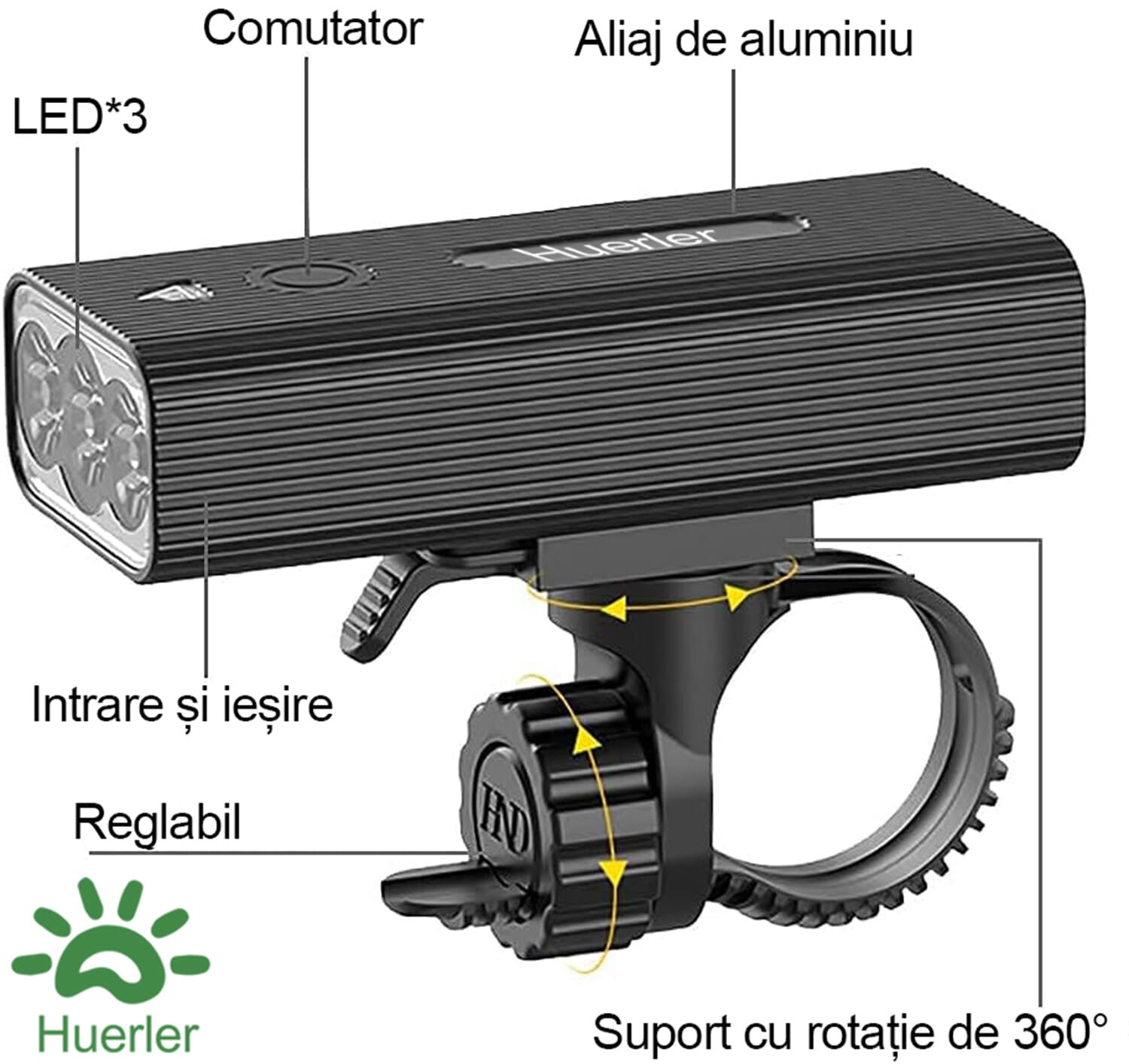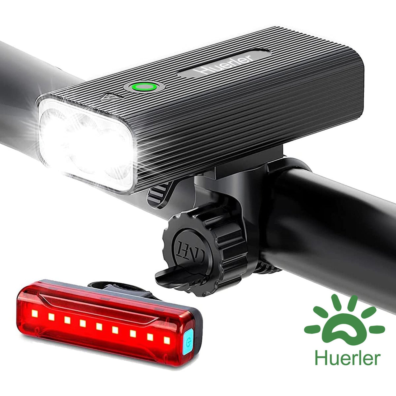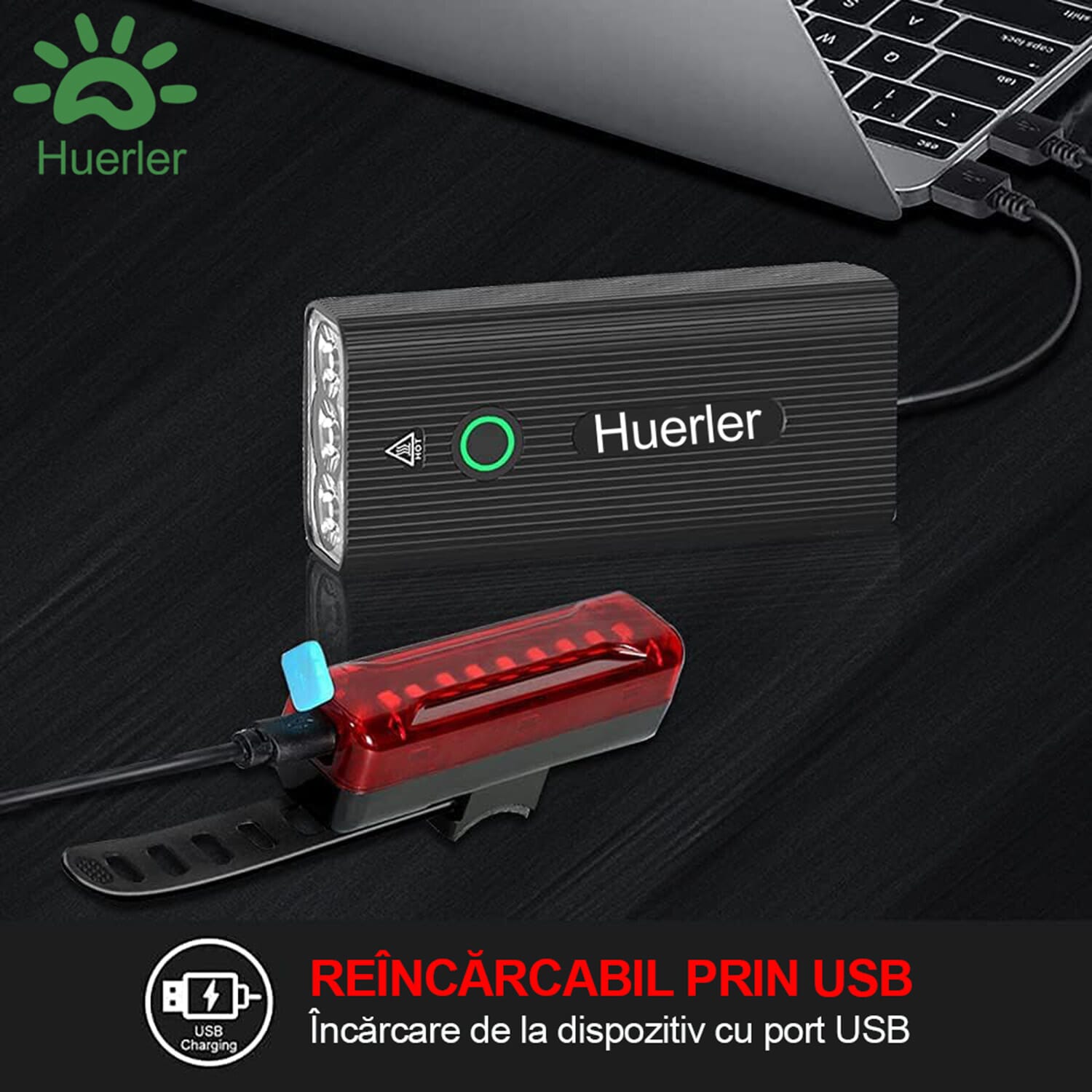 Set Far si Stop Bicicleta Huerler® Vision Pro, realizat din aluminiu rezistent, ofera iluminare puternica, siguranta sporita si functii inteligente pentru bicicleta sau trotineta.