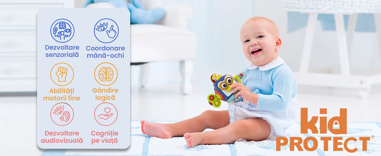 KidProtect® Puzzle Box este mai mult decat o jucarie – este un instrument educativ ce ofera bebelusilor ore de distractie si invatare prin experiente tactile si interactive.