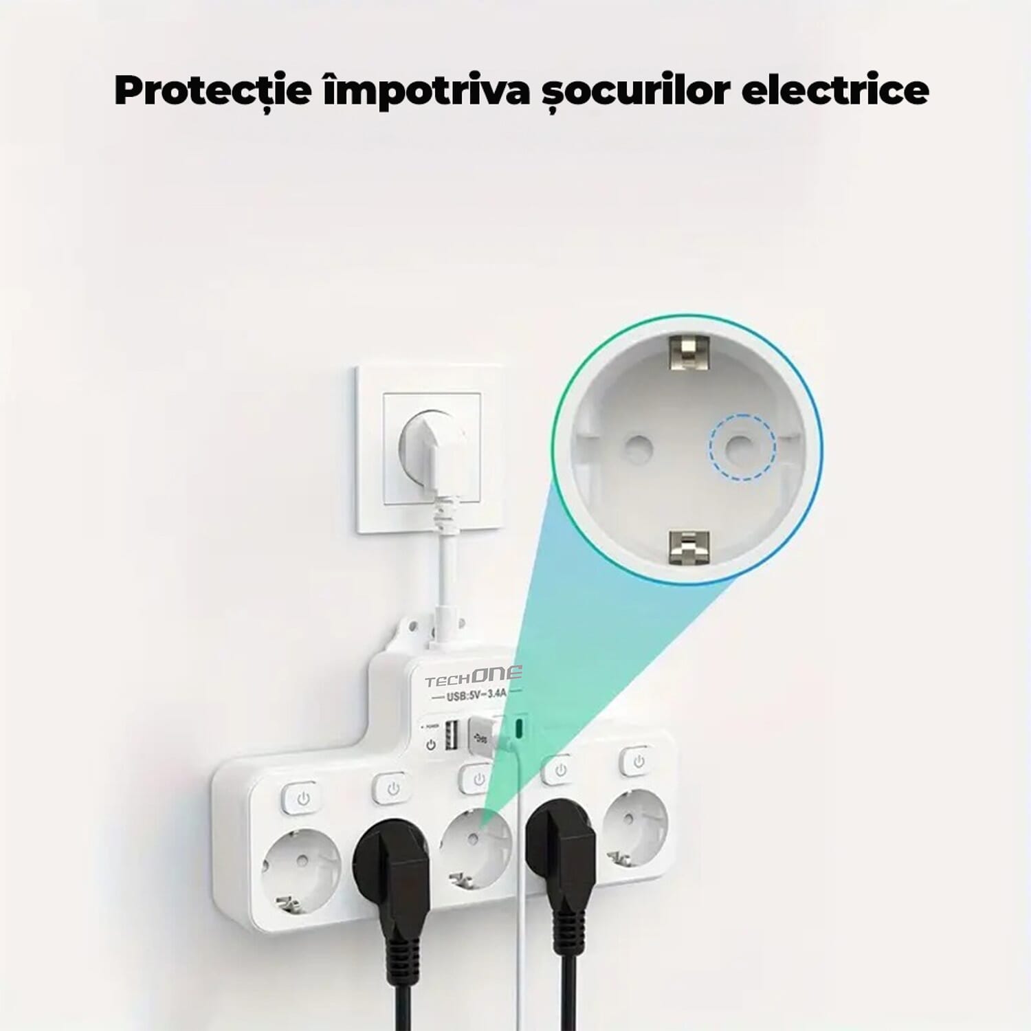 Prelungitor Scurt Techone® PowerHub 9X – Putere, siguranta si versatilitate intr-un format compact