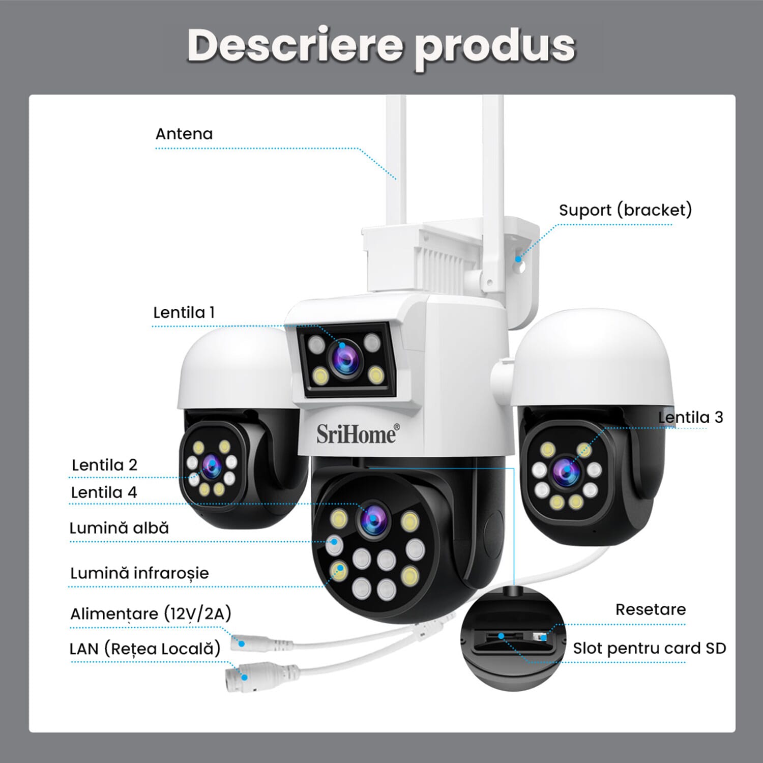 - Camera Cvadrupla De Supraveghere Video WIFI CCTV SriHome SH069 PRO Camera Cvadrupla De Supraveghere Video WIFI CCTV SriHome SH069 PRO