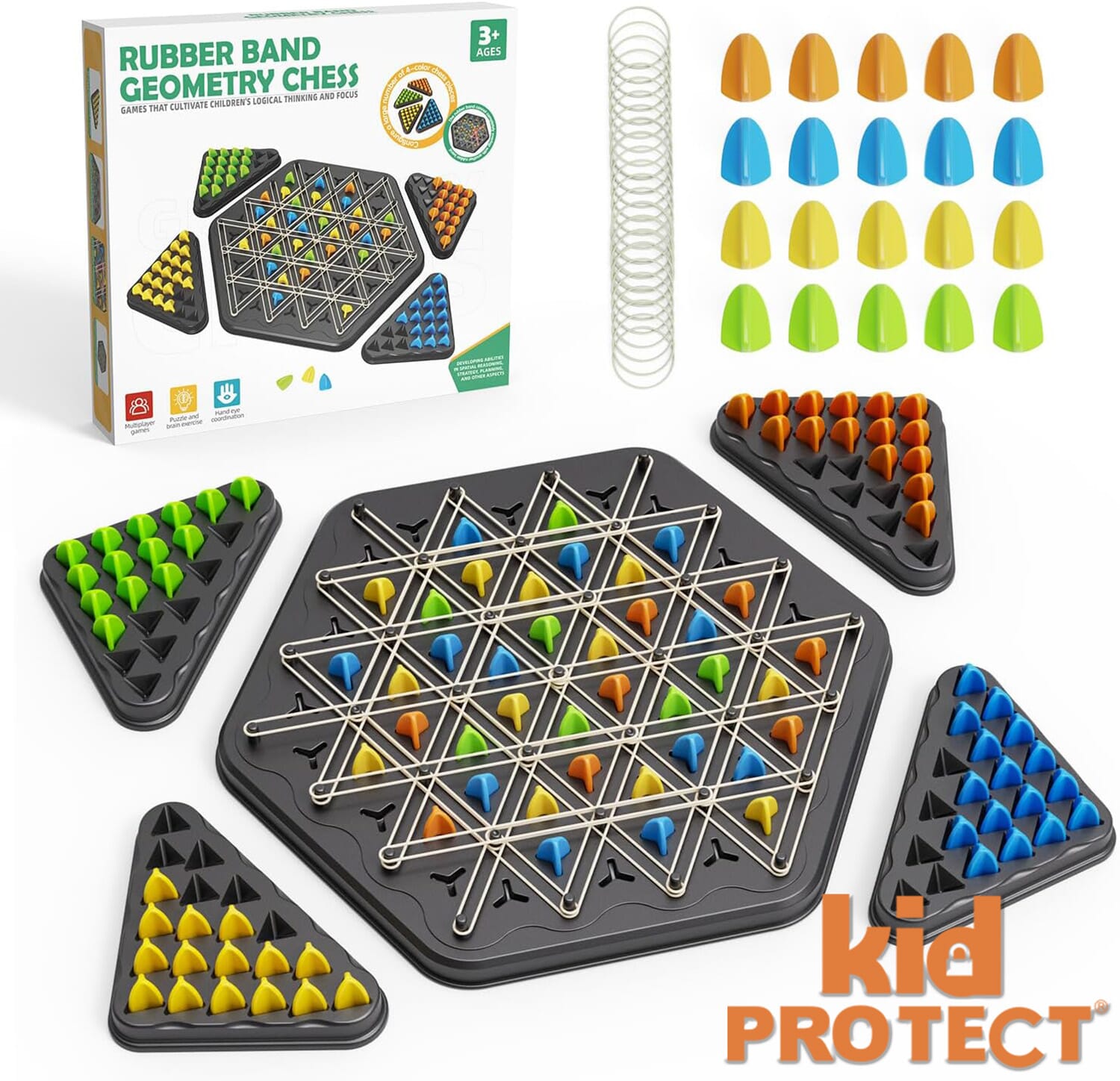 Joc de Masa Tip Sah cu Elastice De Societate KidProtect® Geometry War, 2-4 Jucatori, Pentru Copii Si Adulti