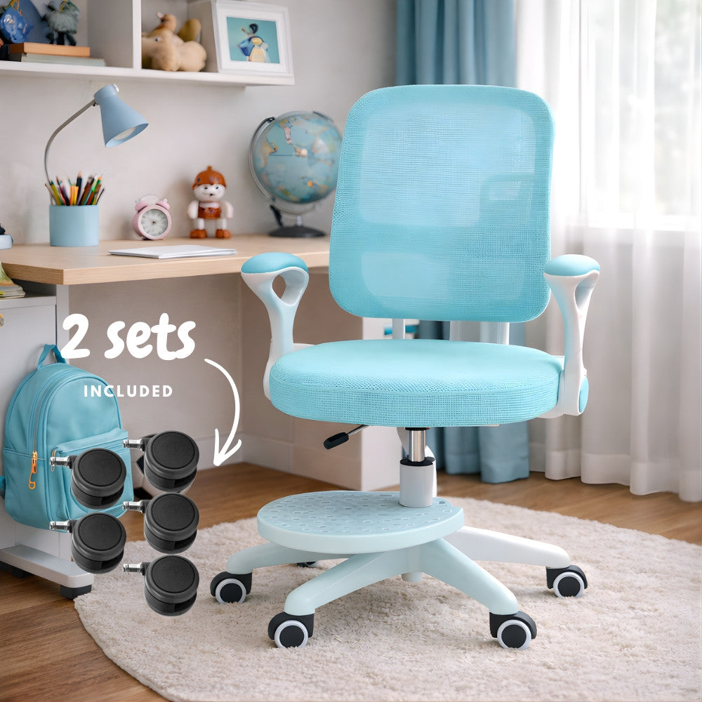Scaun De Birou Copii Premium Ergonomic KD Home® ErgoKid, Cadru Solid, 2 Seturi Roti Incluse, Inaltime Reglabila, Roti Silentioase Silicon, Suport Picioare Ajustabil, Spatar Ajustabil pe Inaltime, Cotiere Rabatabile, Rezistent la Foc, Pana la 120 kg, Albastru