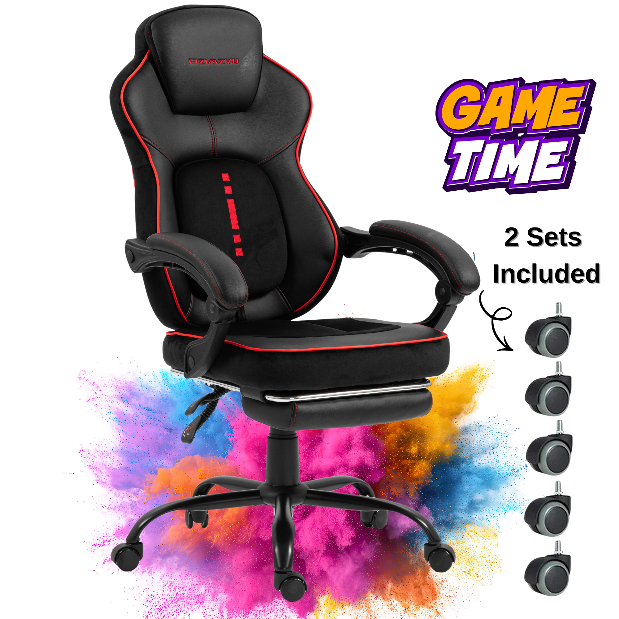 Scaun Gaming Ergonomic Premium ProfesionalKD Home® Apex Fusion EIZI, 2 Seturi Roti Incluse, din Piele Ecologica, Perna Lombara Reglabila, Spatar Rabatabil 165°, Suport Picioare, Pana la 140 kg, Mecanism Tilt, Negru/Rosu